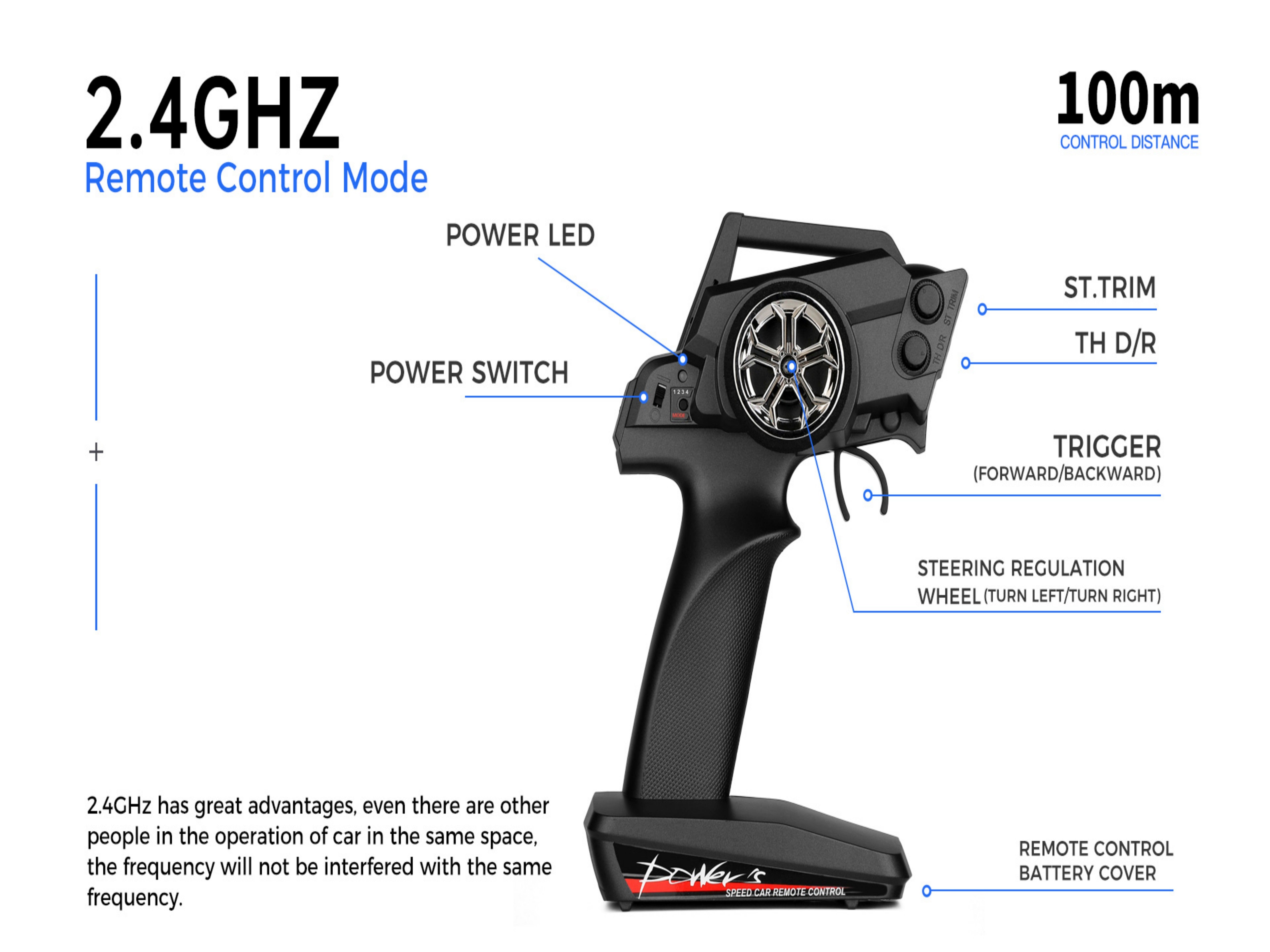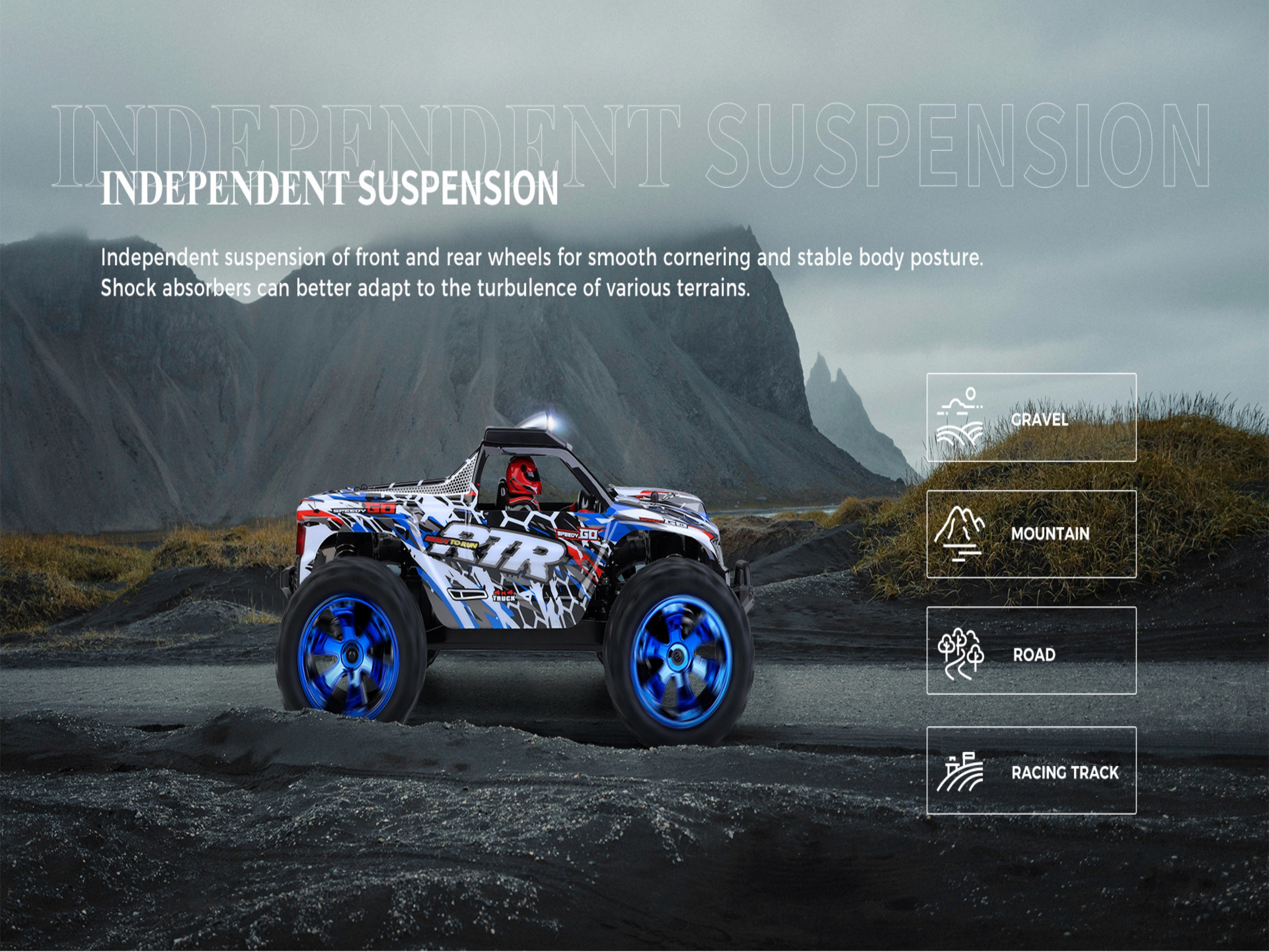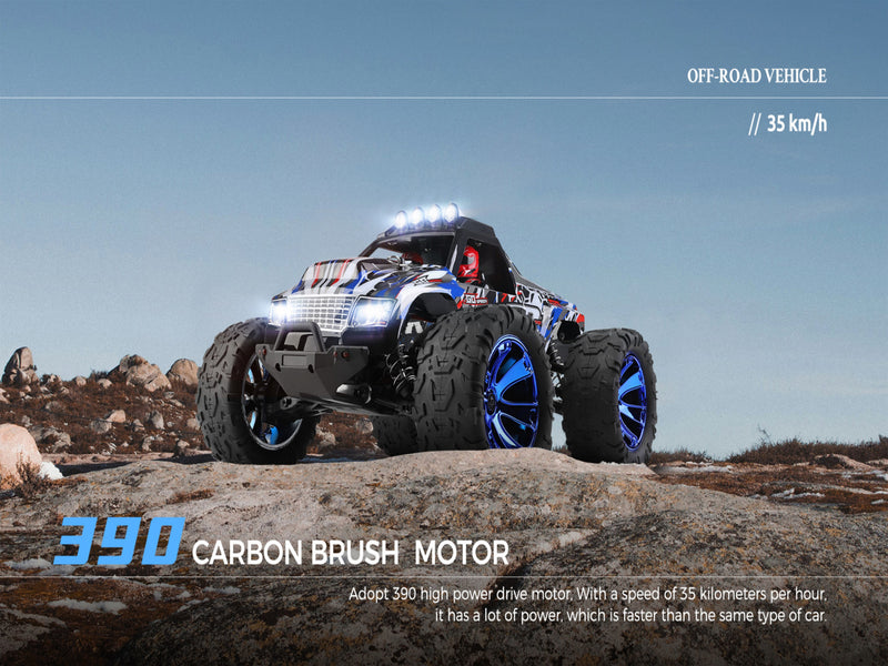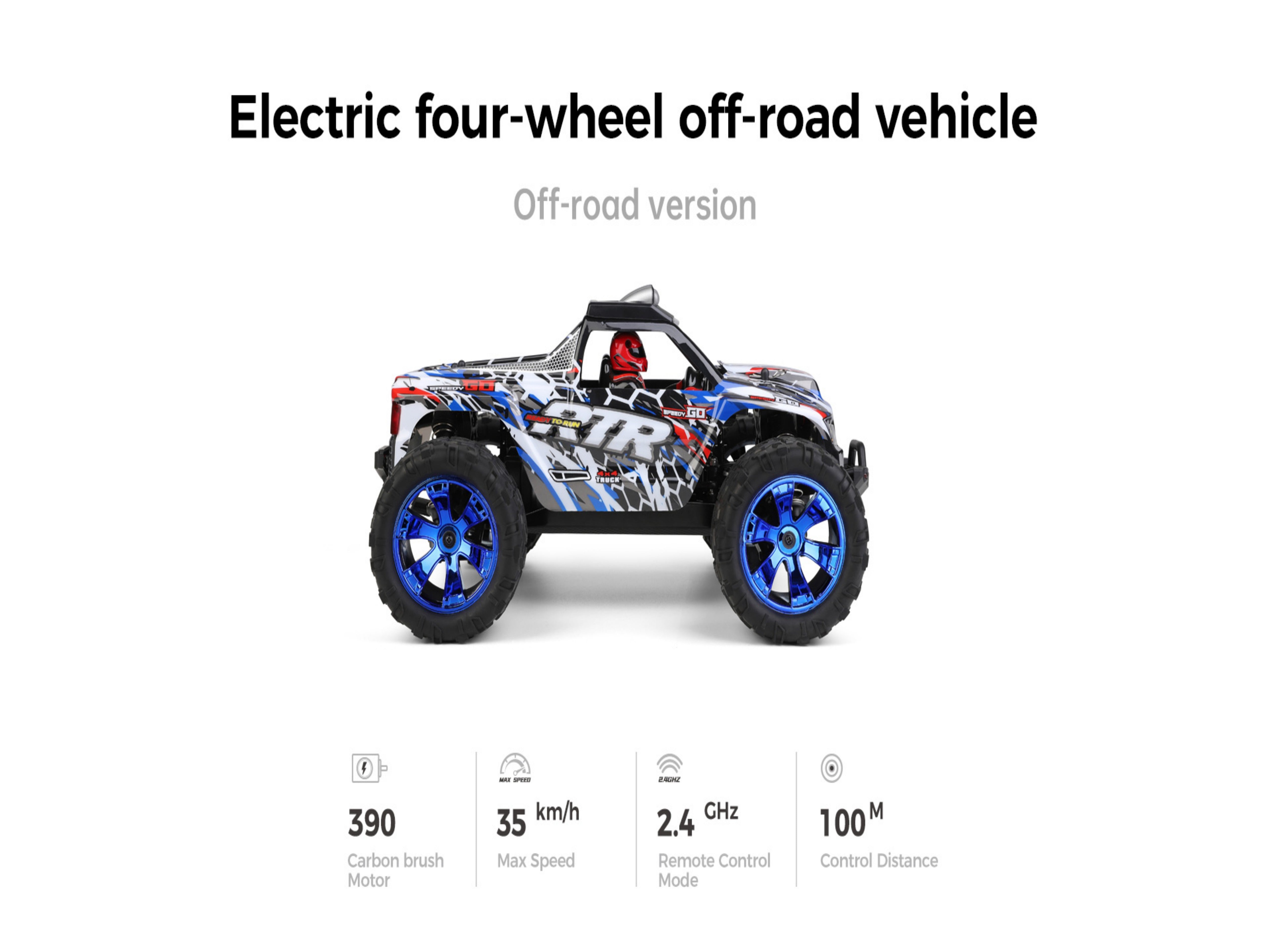 Unleash the power of control car racing with the ZD-pro RC 1:14 Electric 4WD Off-Road Truck! This dynamic model features a 390 carbon brush motor and 4WD system, hitting speeds up to 35 km/h for heart-pounding action. Designed with alloy differential gears and independent suspension, it conquers rough terrains like mountains and racing tracks with ease. The 2.4GHz remote control offers a 100-meter range free from interference, perfect for competitive control car racing. Powered by a 7.4V 1500mAh battery with 15 minutes of runtime, it’s built for durability and speed. Weighing 1970g, it boasts a sleek black, white, blue, and red stripe design. Elevate your RC hobby—shop now and dominate the off-road!