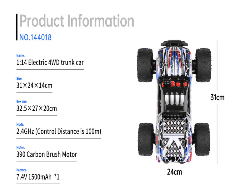 RC 1:14 Electric 4WD Control Car Racing Off-Road Truck - 35km/h High Speed
